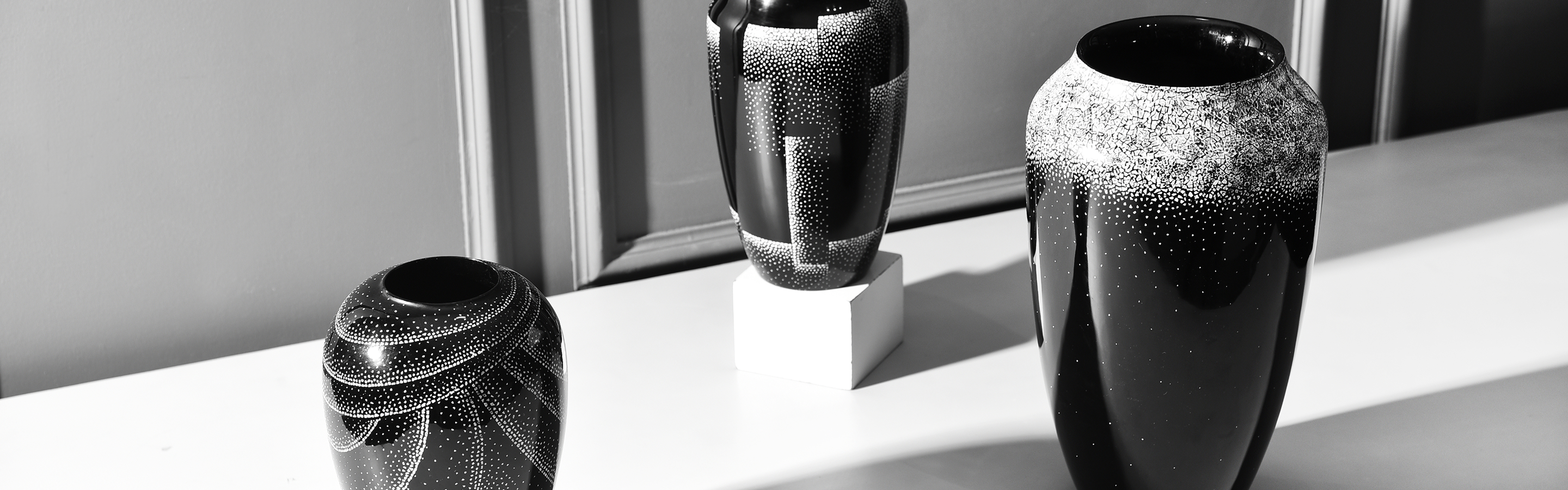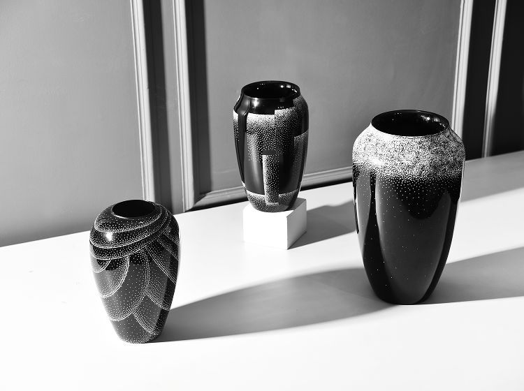 Lacquerware Vase With Eggshell Inlay With Transition Design