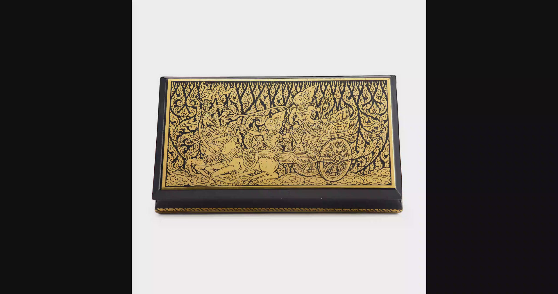 0 ReviewsThis fine black lacquered box with gold leaf gilding depicts the royal barge, ‘Suphannahong’, considered the most important and most elegant vessel in the royal barge procession. The design of the piece depicts traditional Thai art motifs like stylized foliage and floral patterns. The...- ₹ 12,000.00