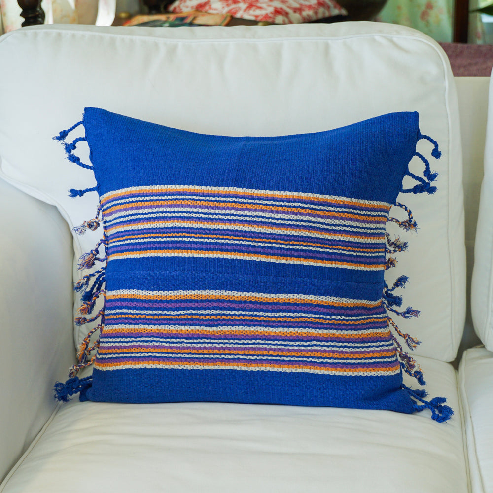 This classic handwoven cushion cover sourced directly from the Karen community of northern Thailand is designed with the colourful hues and striped patterns of traditional men’s tunic. Embellished with playful tassles, the earthy and rustic cushion cover will infuse your room with warmth and character.