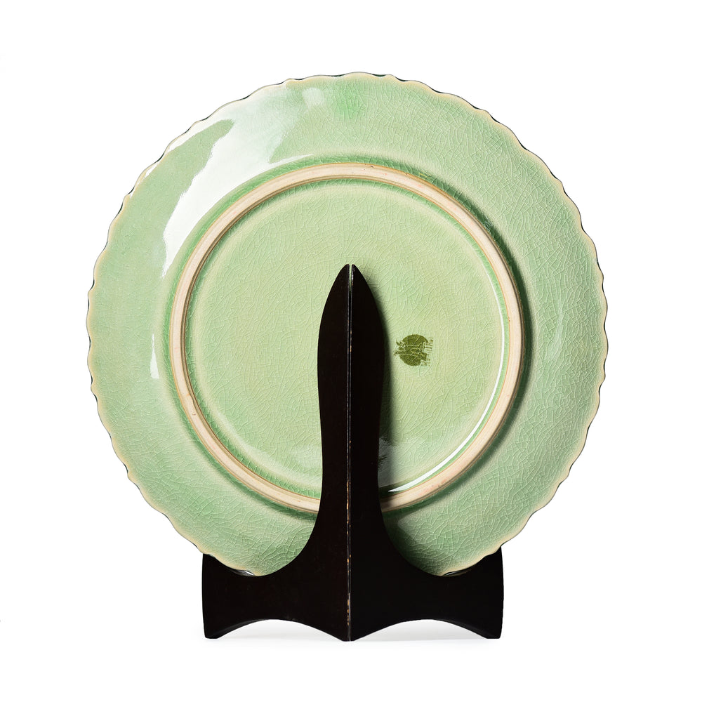 Hibiscus called ‘Pudtan’ in Thai is a popular decorative motif and is considered a symbol of auspiciousness in Thai culture. The hand carved plate with its scalloped edge and bas-relief of symmetrical design of flowers and tendrils creates a textured ornamental effect.