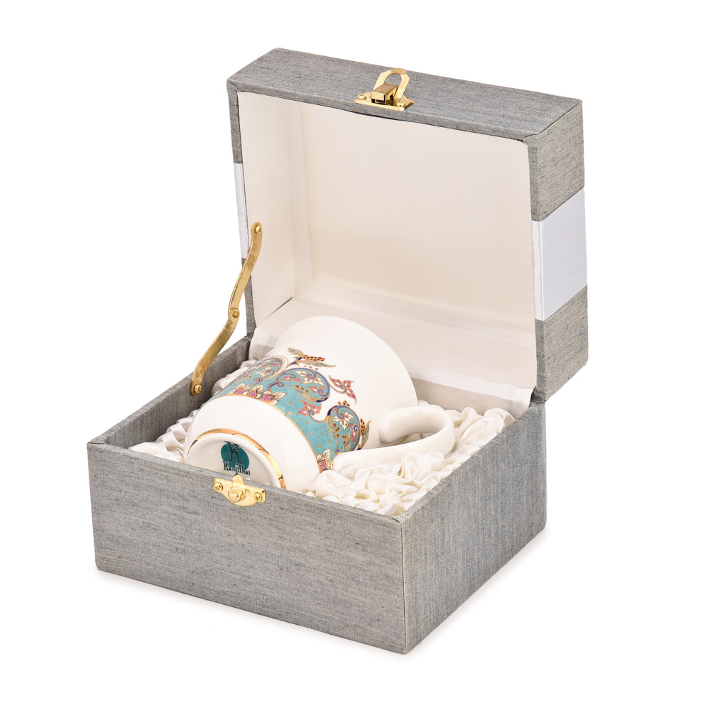 Crafted for connoisseurs of fine artistry, the mug with intricate charming design of floral blue waves on the finest bone china will elevate your coffee experience with its exquisite craftsmanship.