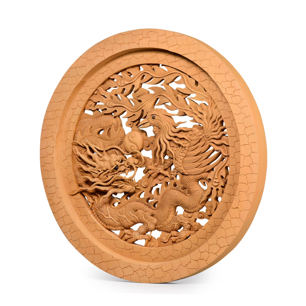 Elevate your home with this stunning wood carving of the mythical dragon and swan. Crafted with exclusive detail, the sculpture possesses remarkable clarity and beauty.